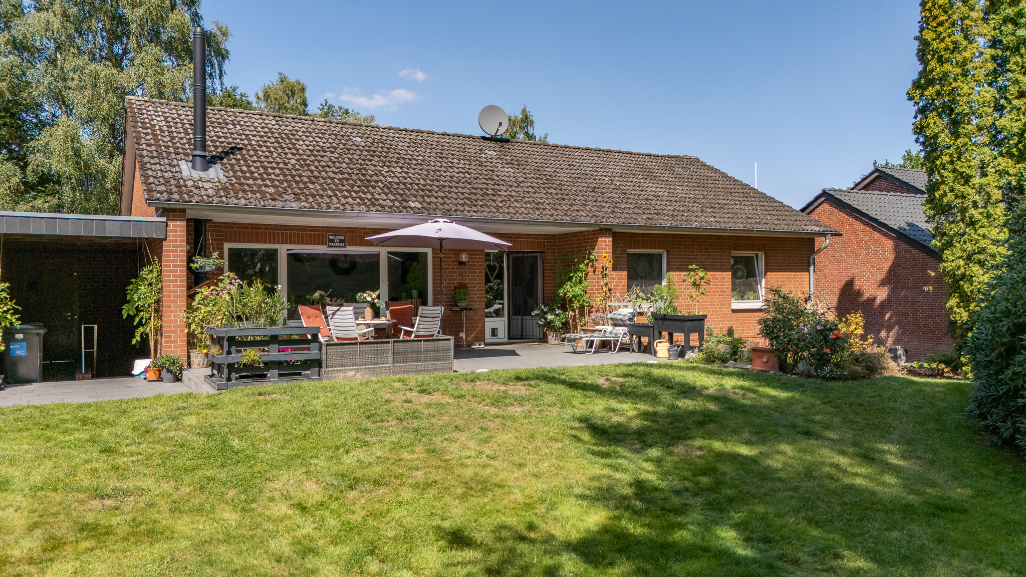 - Außenbereich: Terrasse mit Zugang zum Garten